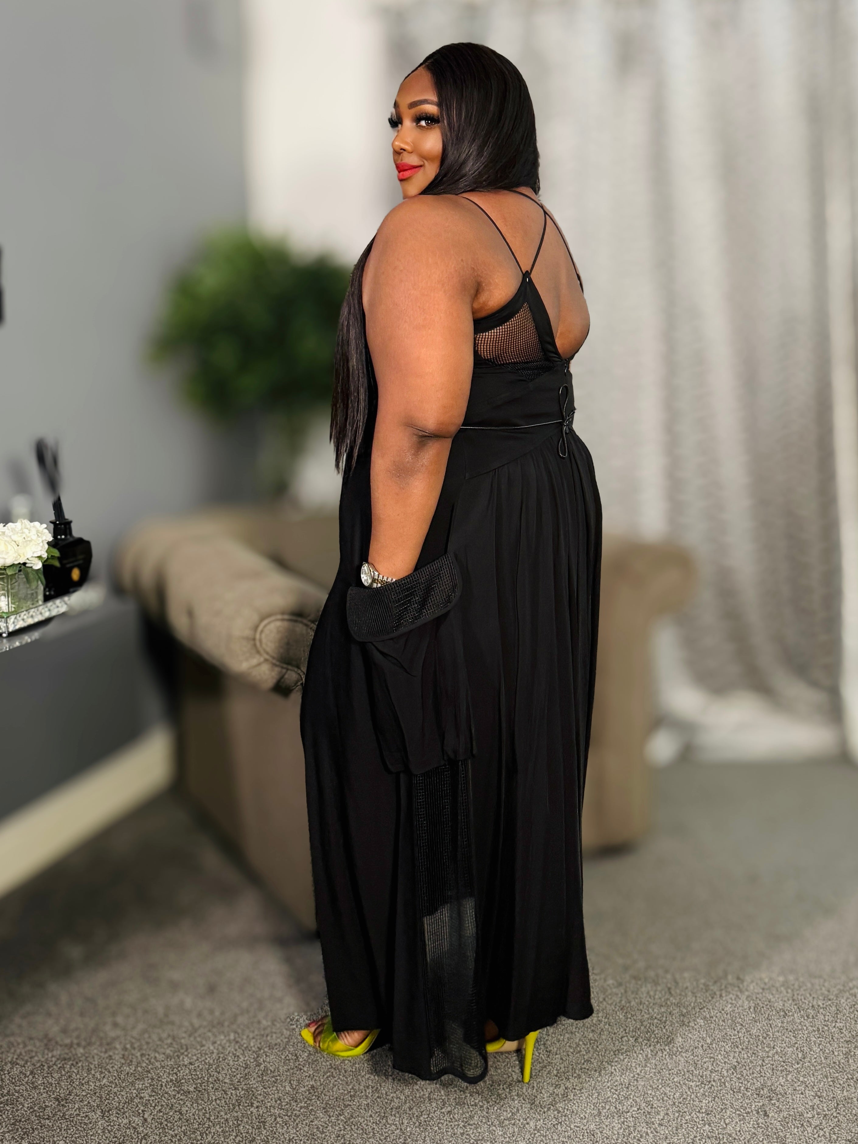 Command every room without saying a word in The After Dark Maxi — a bold black dress that blends sleek sophistication with after-hours allure. Crafted from ultra-fluid, lightweight fabric that moves with you, it drapes gracefully over your curves without clinging.