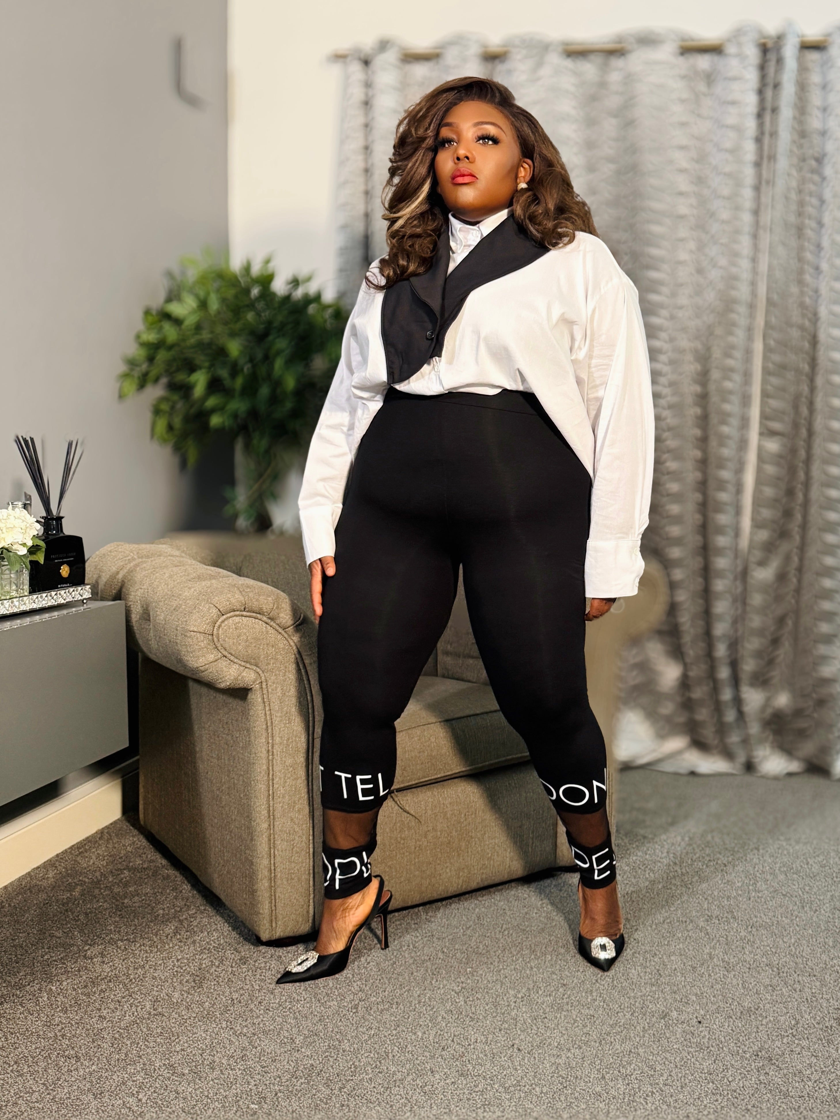 Turn heads and make a statement with our Bold Texts Leggings—where style meets confidence! Designed with a sleek black base and eye-catching text detailing, these leggings add an edgy, fashion-forward touch to any outfit. Made from a premium stretch fabric, they offer a snug yet comfortable fit that moves with you. Whether you’re dressing them up with heels or keeping it casual with sneakers, these leggings are a must-have for every trendsetter.