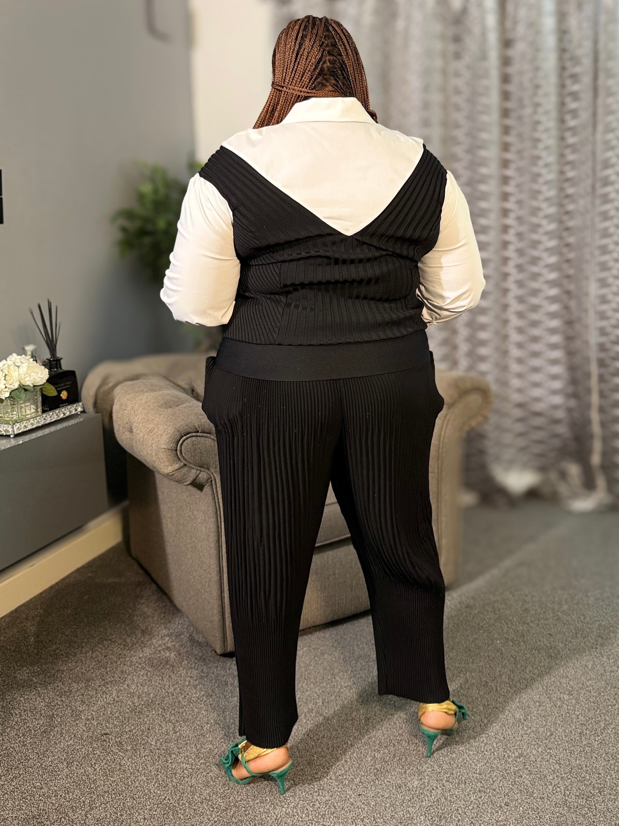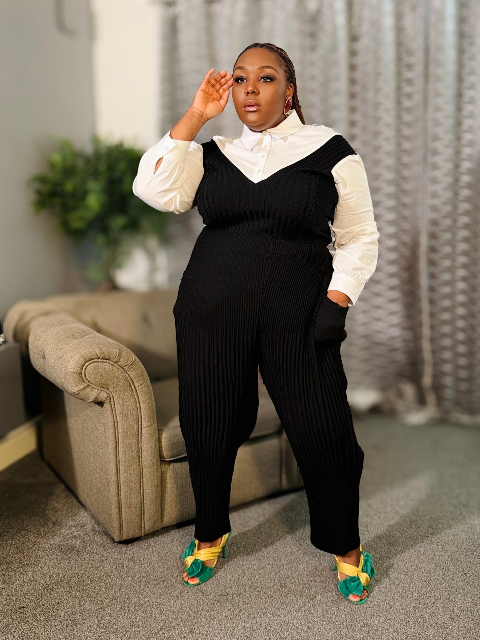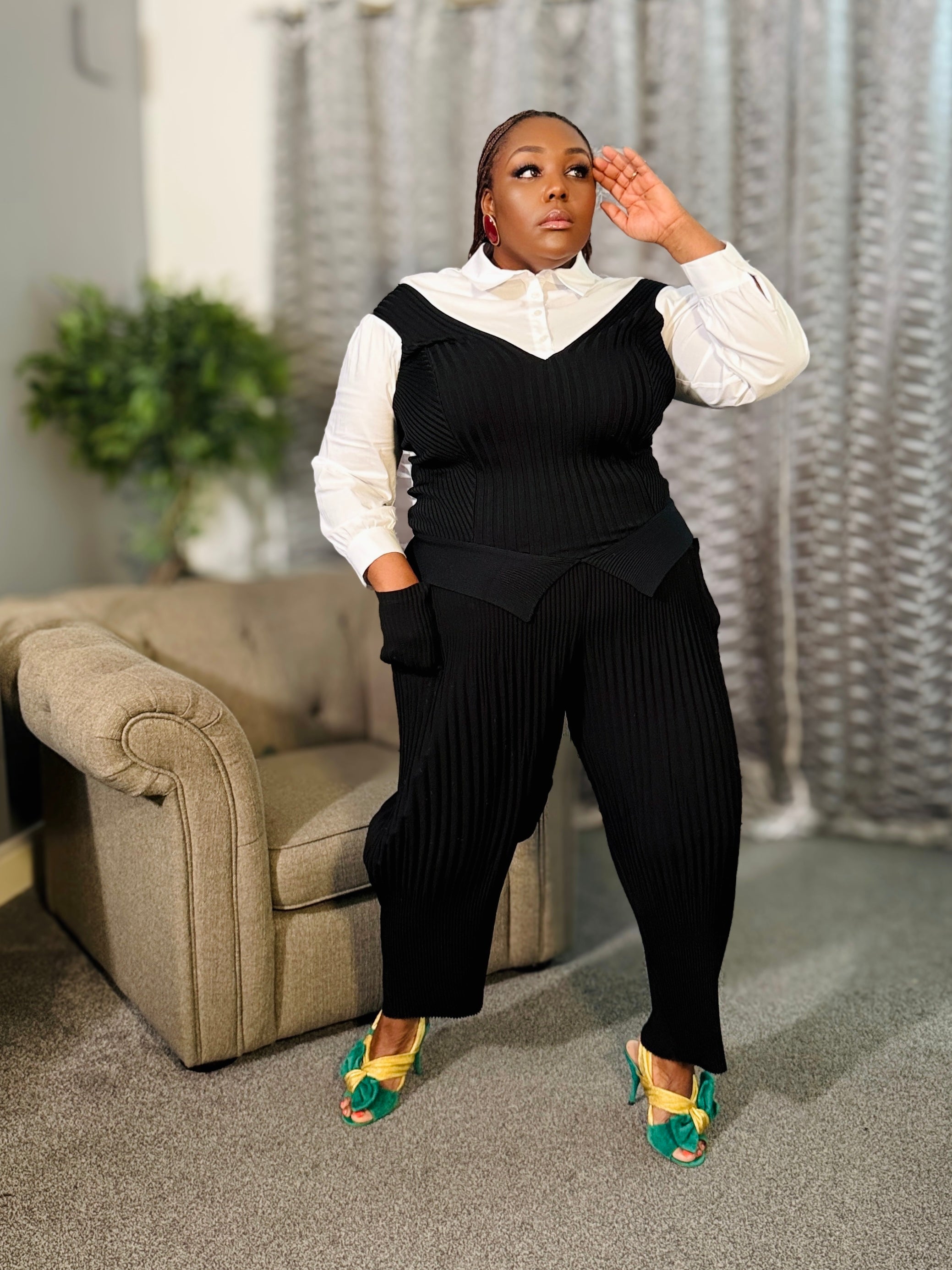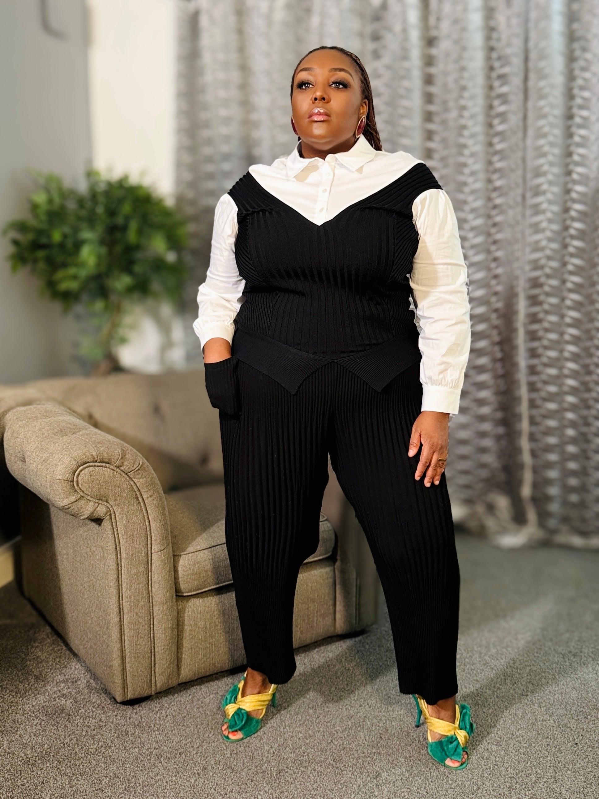 Meet your new wardrobe essential — The Sculpted Harmony Shirt, where crisp tailoring blends seamlessly with curve-loving design. Featuring a classic white shirt base and a ribbed black knit overlay, this piece creates instant structure and shape while remaining incredibly comfortable.