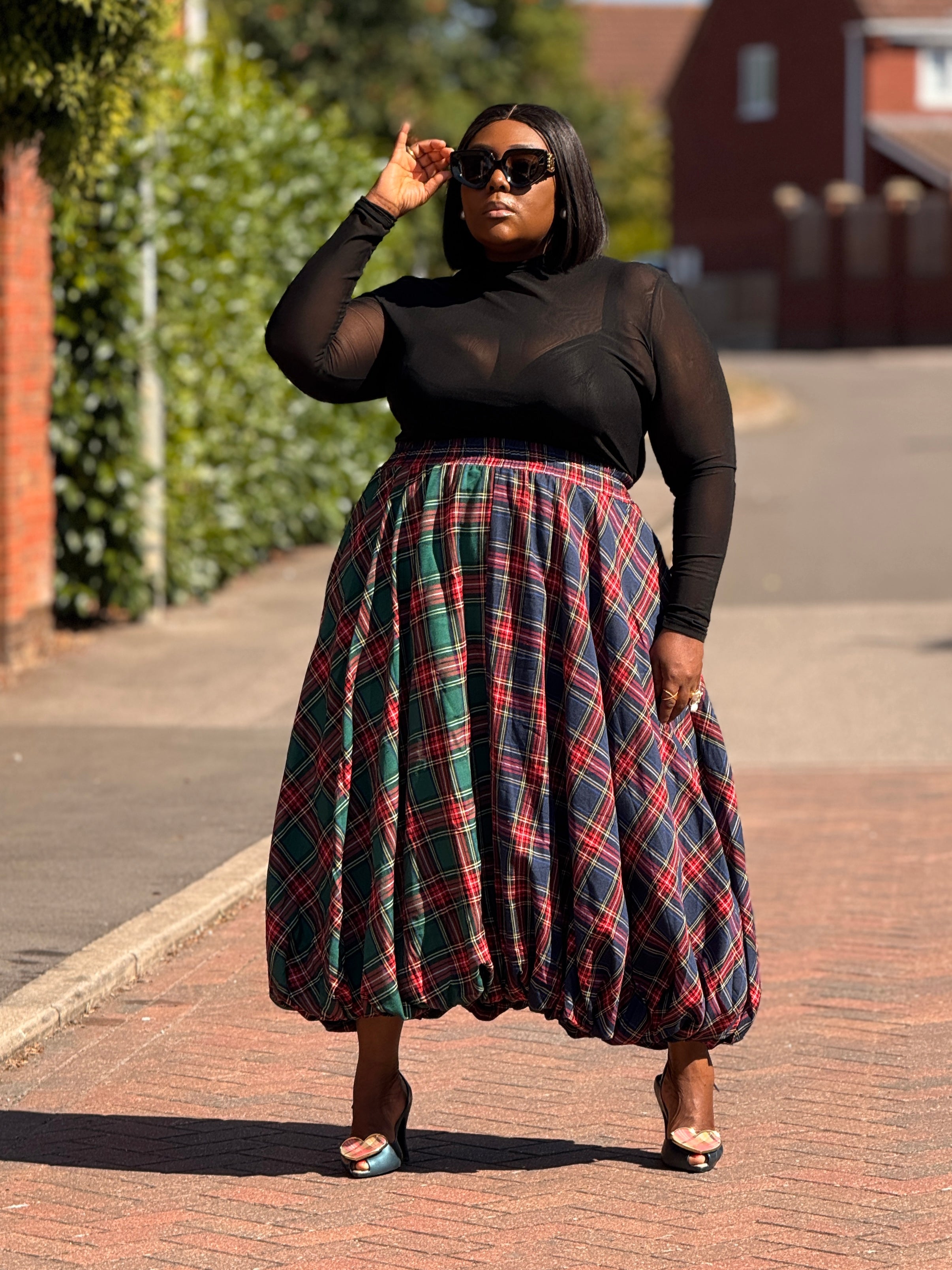 Bring drama, movement, and timeless style to your wardrobe with The Tartan Bubble Skirt, certainly a perfect staple for all seasons . Designed with a bold multi-tone tartan print, this skirt reinvents a classic pattern with a voluminous bubble hem that exudes confidence and individuality and designed to flatter your waist while adding playful movement with every step.