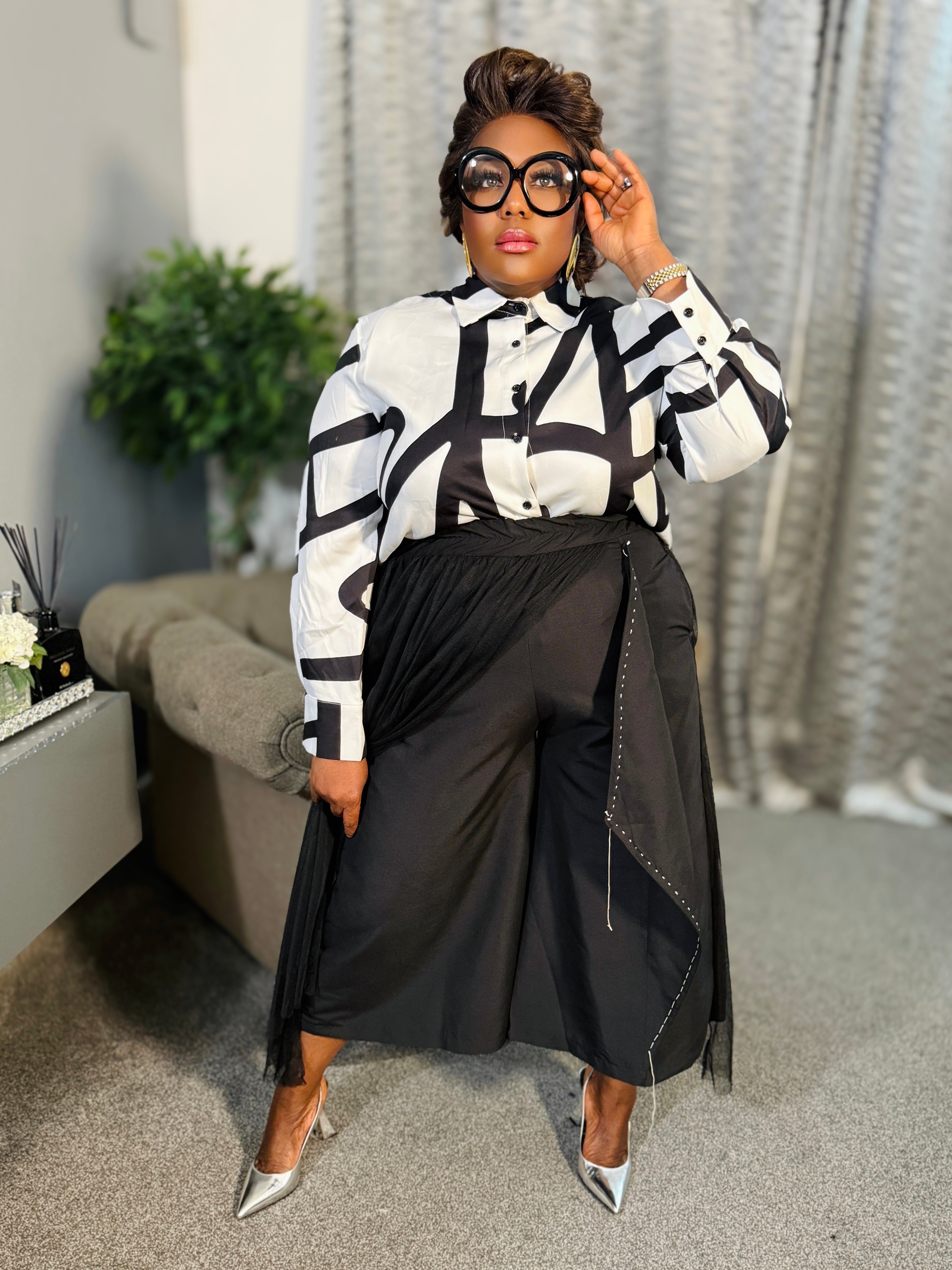 Elevate your style with the Tulle Overlay Shorts, where structured tailoring meets soft, ethereal layers. Crafted for the modern trendsetter, these high-waisted shorts feature a sleek silhouette complemented by a flowing asymmetrical tulle overlay, adding movement and a touch of drama. Accented with delicate details, elasticated waist and side pocket.